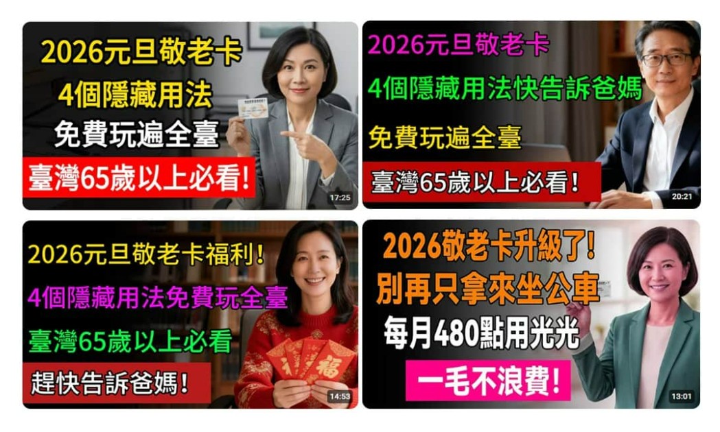 近期有段影片在網路流傳,內容聲稱2026年起敬老卡「功能大爆發」,有搭火車到外縣市優惠價等4個隱藏功能。此為AI生成的不實訊息,台灣目前各縣市敬老卡的福利不盡相同,以下為事實查核中心的查核結果: