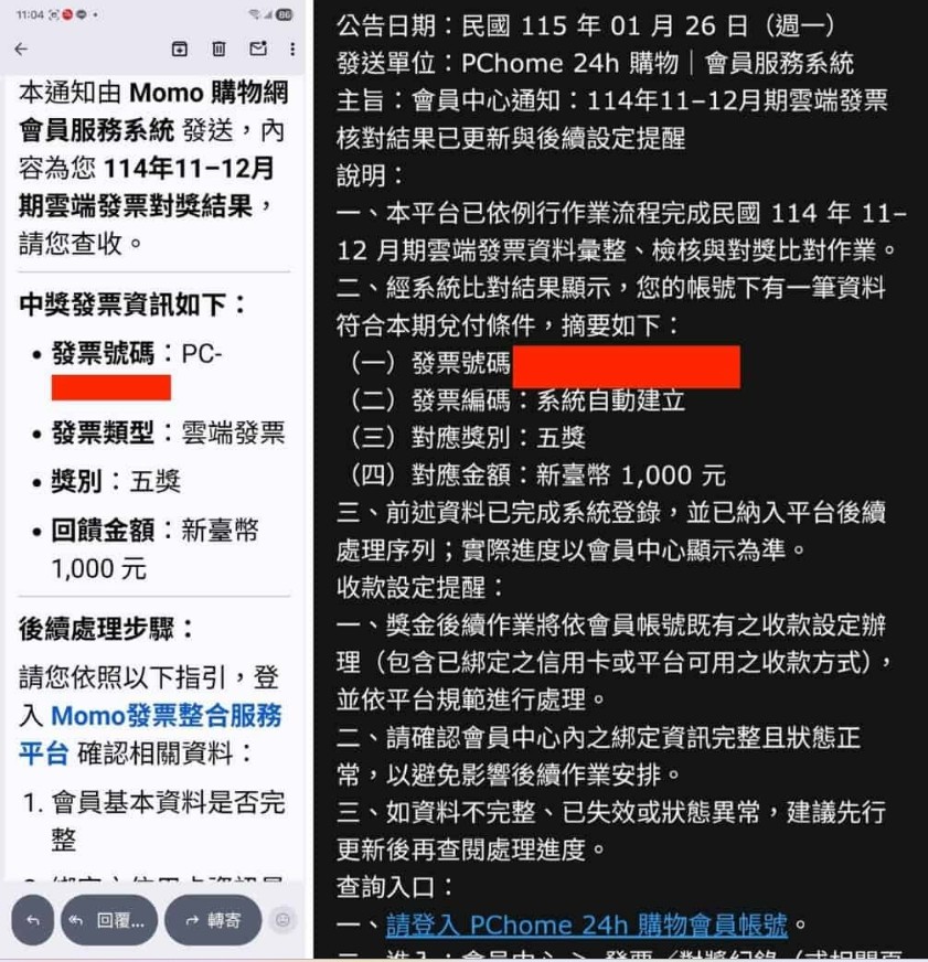 2.財政部表示,官方不會寄發電子郵件要求民眾輸入信用卡資訊。雲端發票若中獎,會透過「統一發票兌獎APP」通知或由民眾自行查詢。若民眾已設定自動匯款,獎金則會直接匯入指定帳戶,無須進行信用卡驗證。