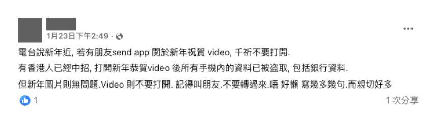 網傳「手機打開新年祝賀影片會被盜資料」?這是錯誤資訊